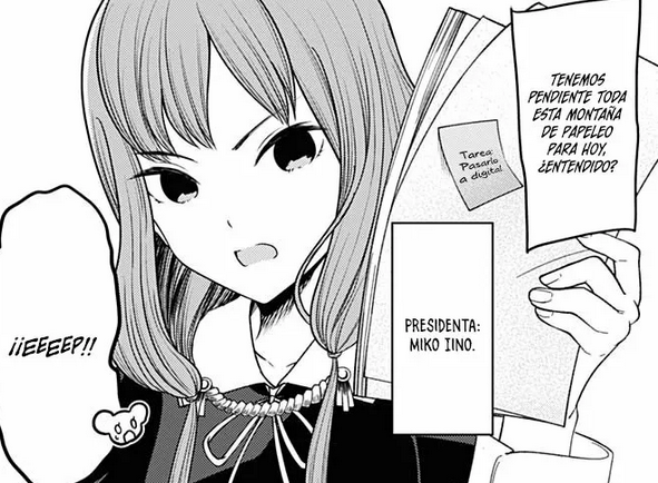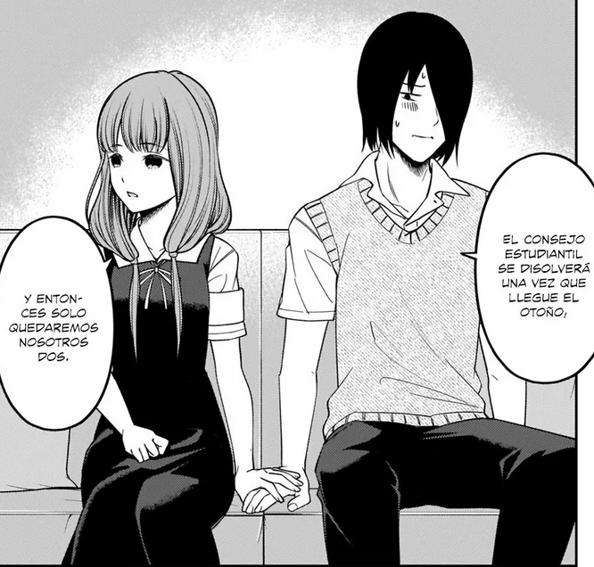 Y nuevamente, aqui hago un salto en el tiempo de la historia de Kaguya-sama y solo dire que esta es la parte de final de su historia, en donde el presidente, ironicamente ya es no es el presidente del consejo estudiantil y ahora esta cumpliendo su meta original, por otra parte, ahora que la sala del consejo estudiantil ya no tiene lider, gracias a todo lo que a pasado Miko, naturalmente toma el liderazgo.